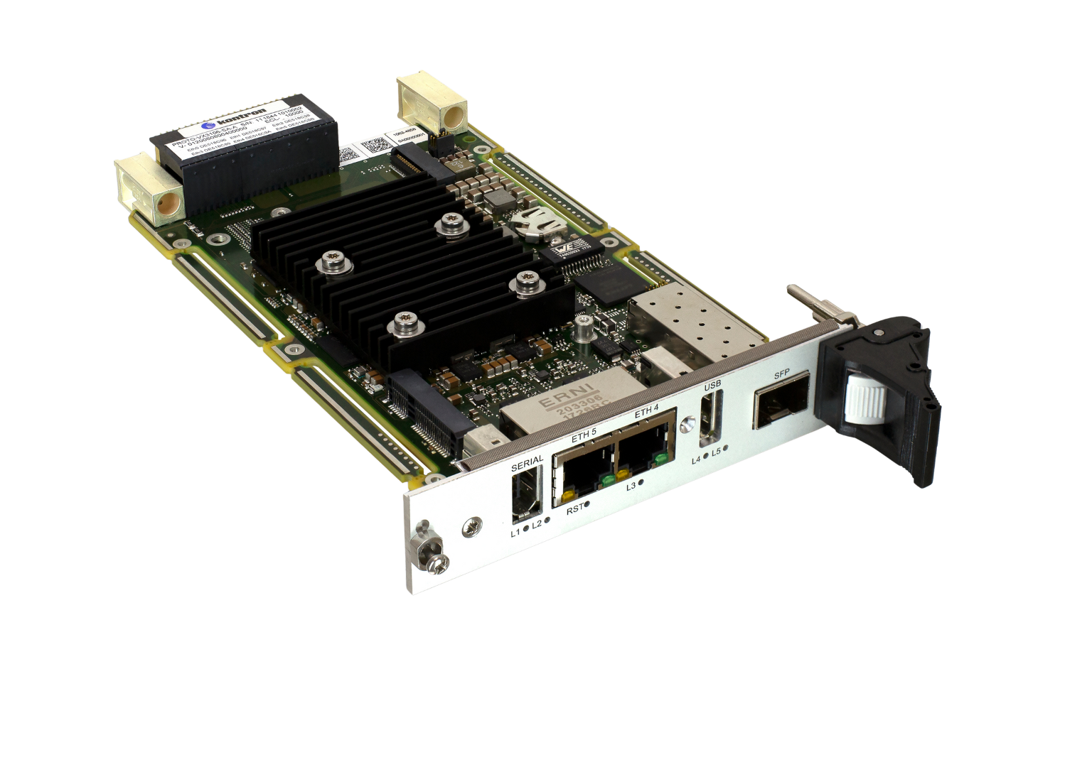 Download Datasheet View ProductKontron VX307H: A rugged 3U VPX Plug-In card with 100GbE, AFT cooling, and Intel® Xeon® D-2700, built to SOSA™ specs for high-performance defense, avionics, and transportation systems.